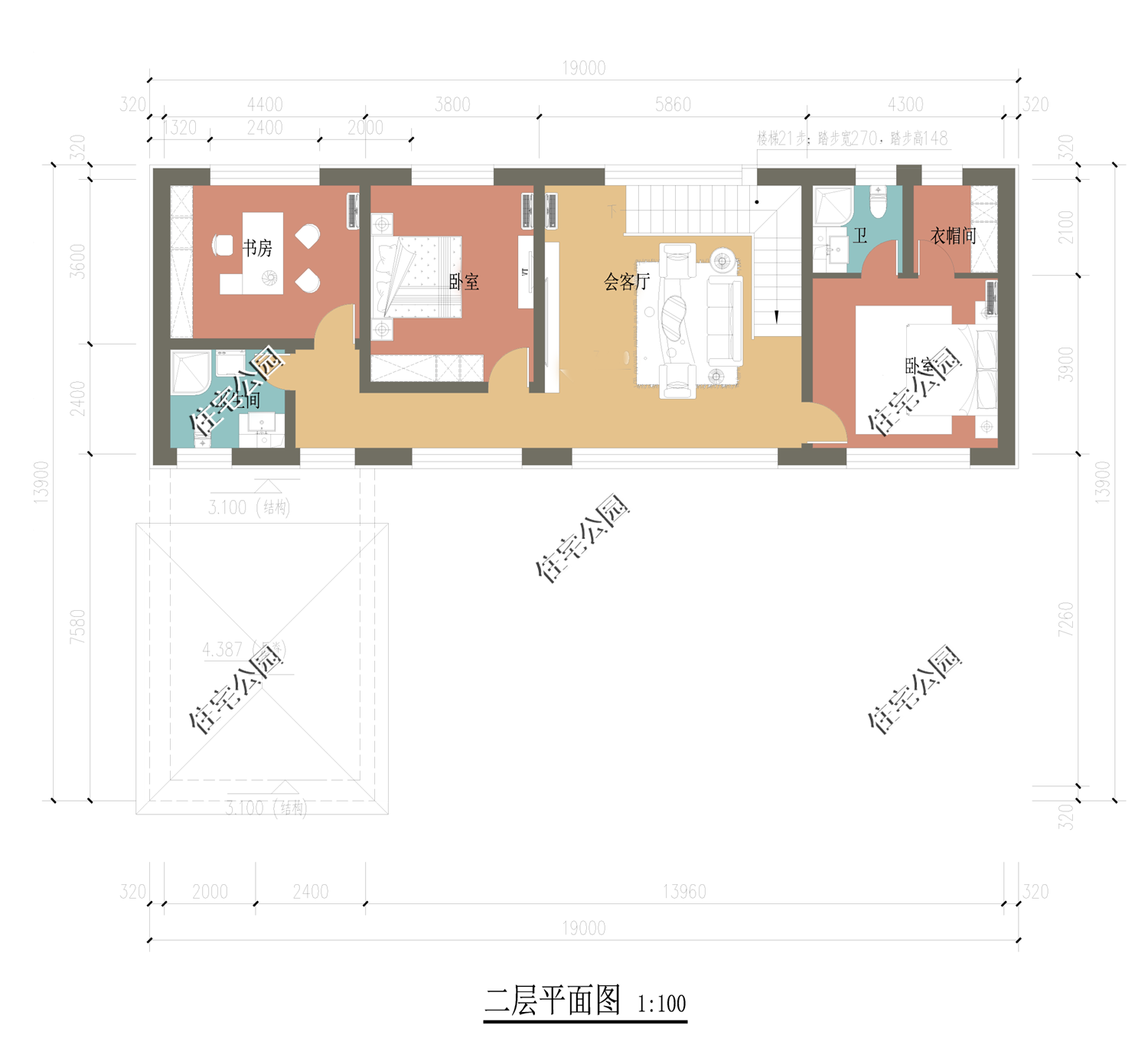 占地尺寸:19m×13.9m