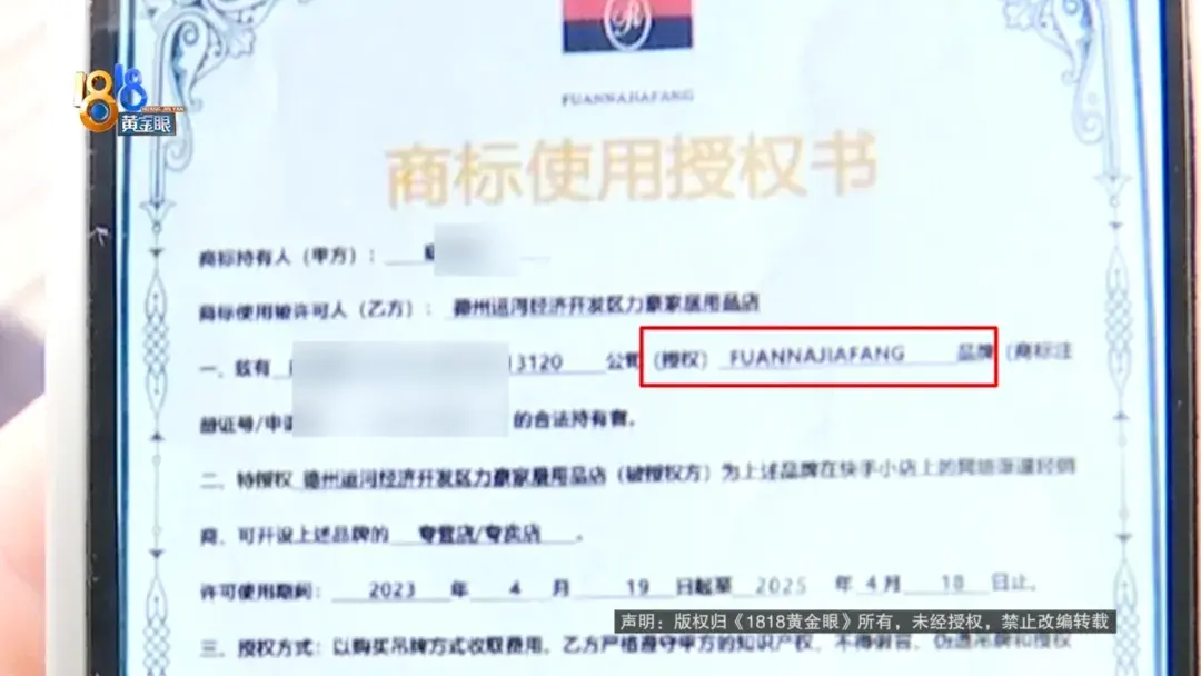 富安娜深圳总公司工作人员:没有关联,应该是假货,我们就是富安娜。核实了之后,那个不是我们授权的,不会以个人的授权的,都是公司授权的。